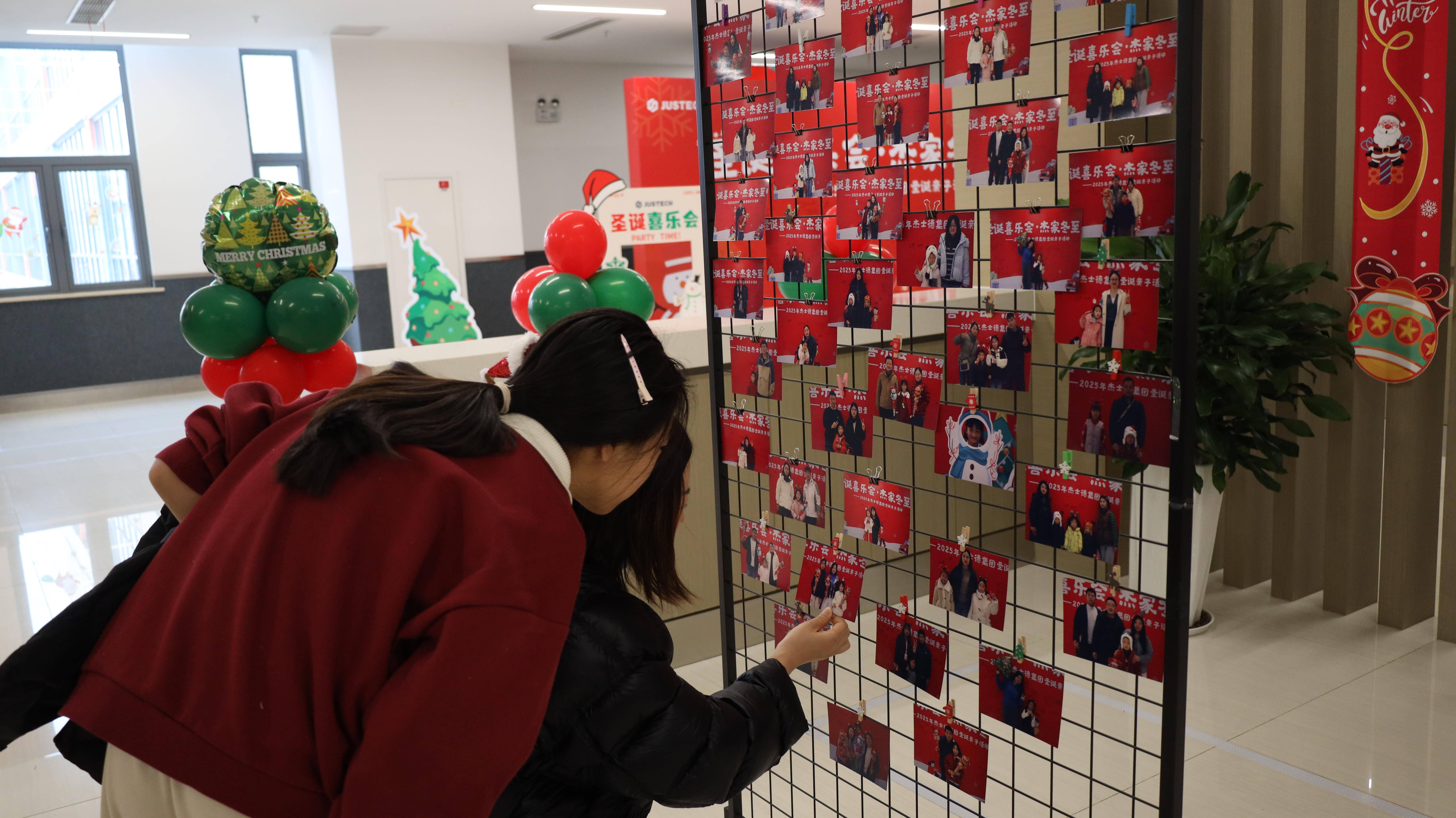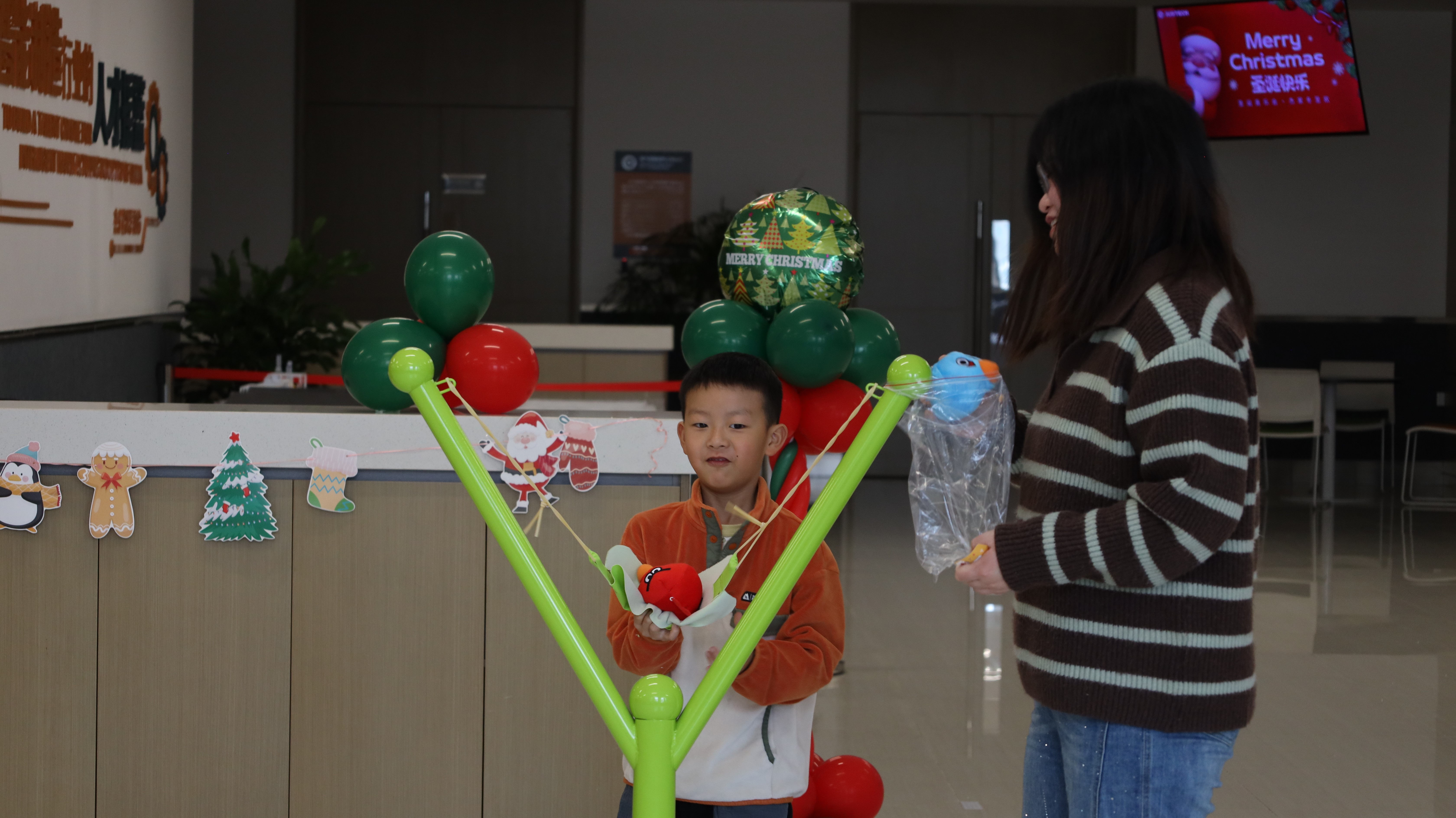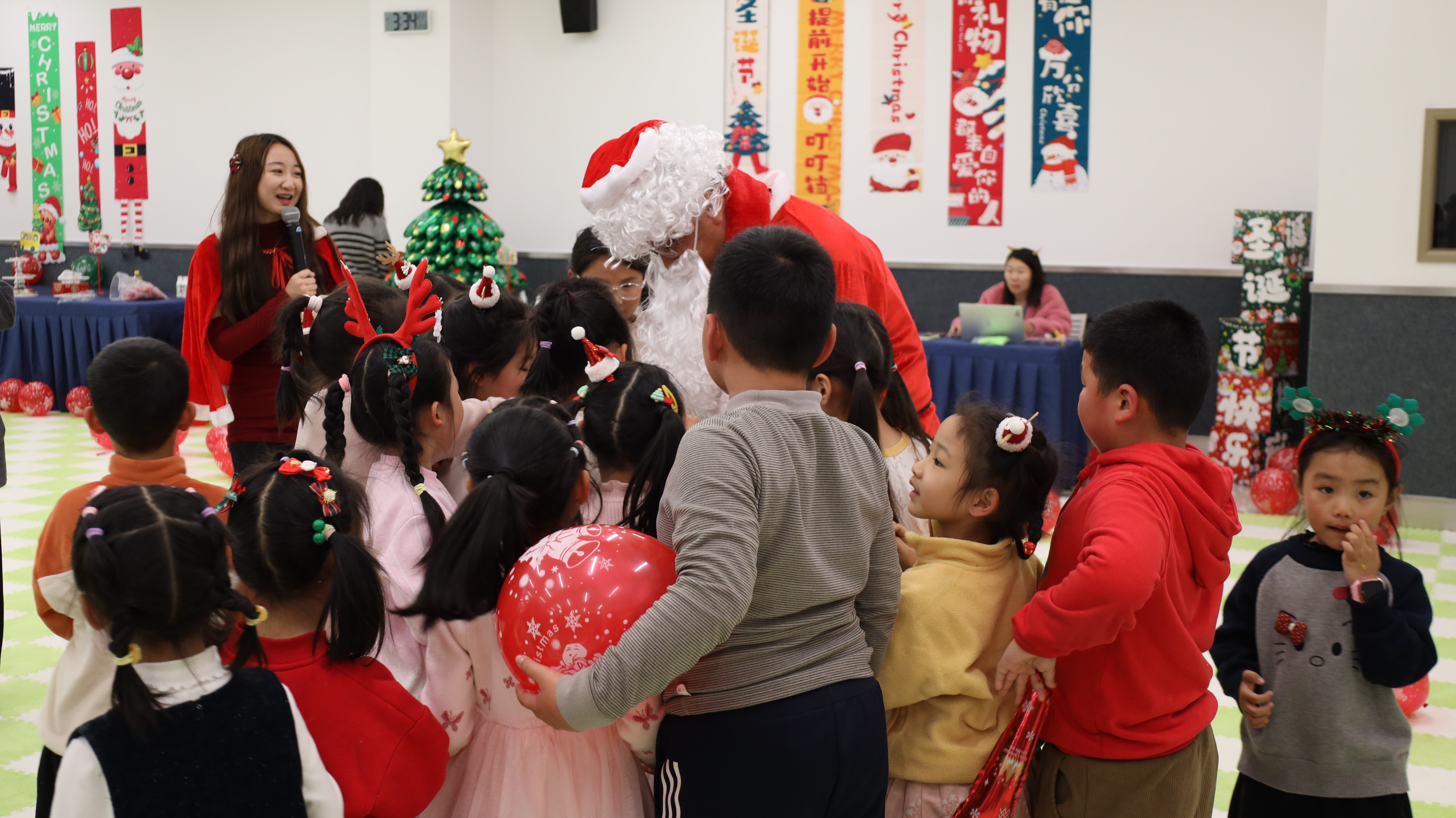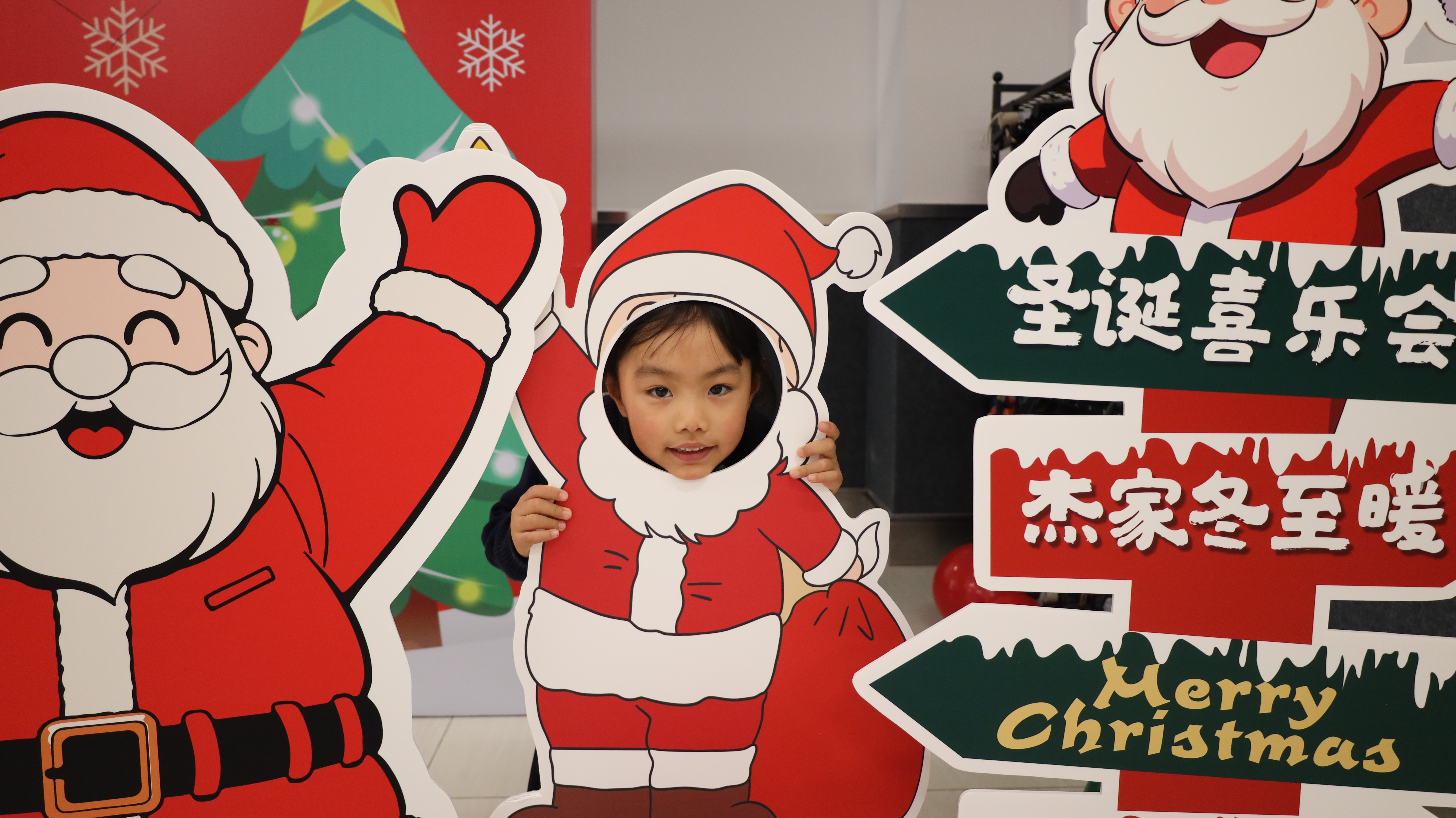 踏入活动现场,浓厚的圣诞氛围瞬间扑面而来:醒目而贴心的指引牌静静矗立,缤纷气球与节日装饰错落点缀,每一处细节都蕴藏着巧思与心意。