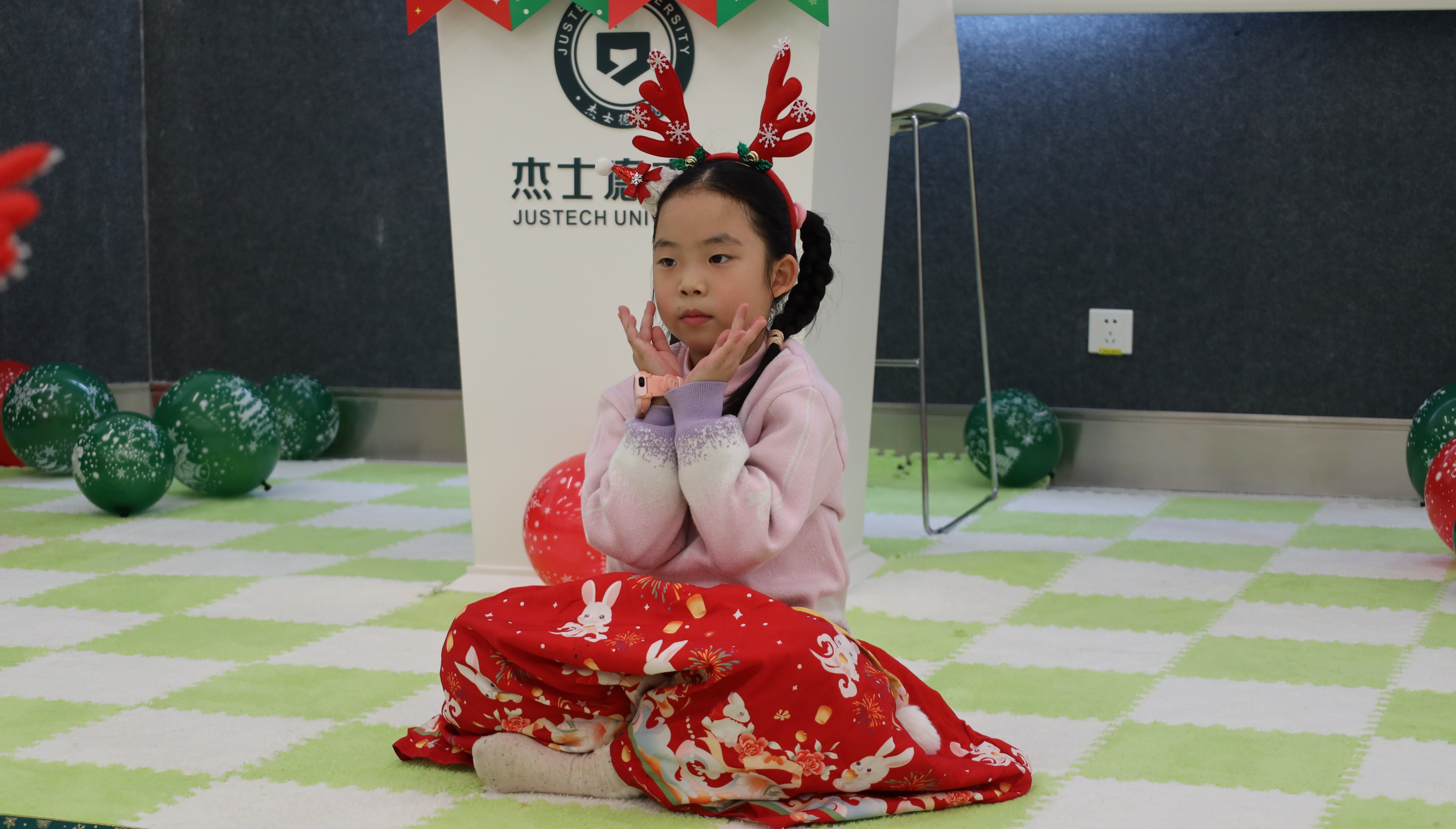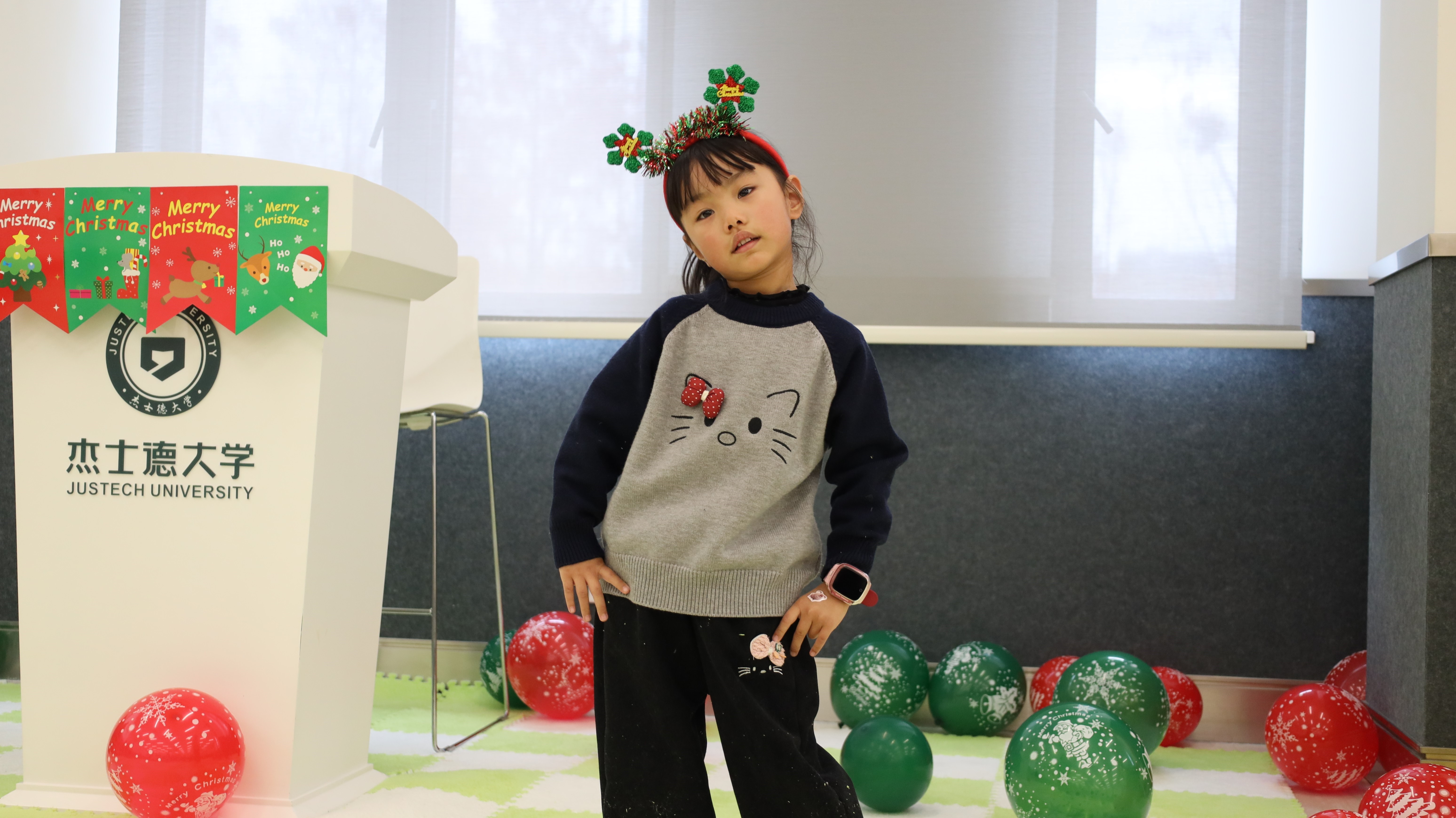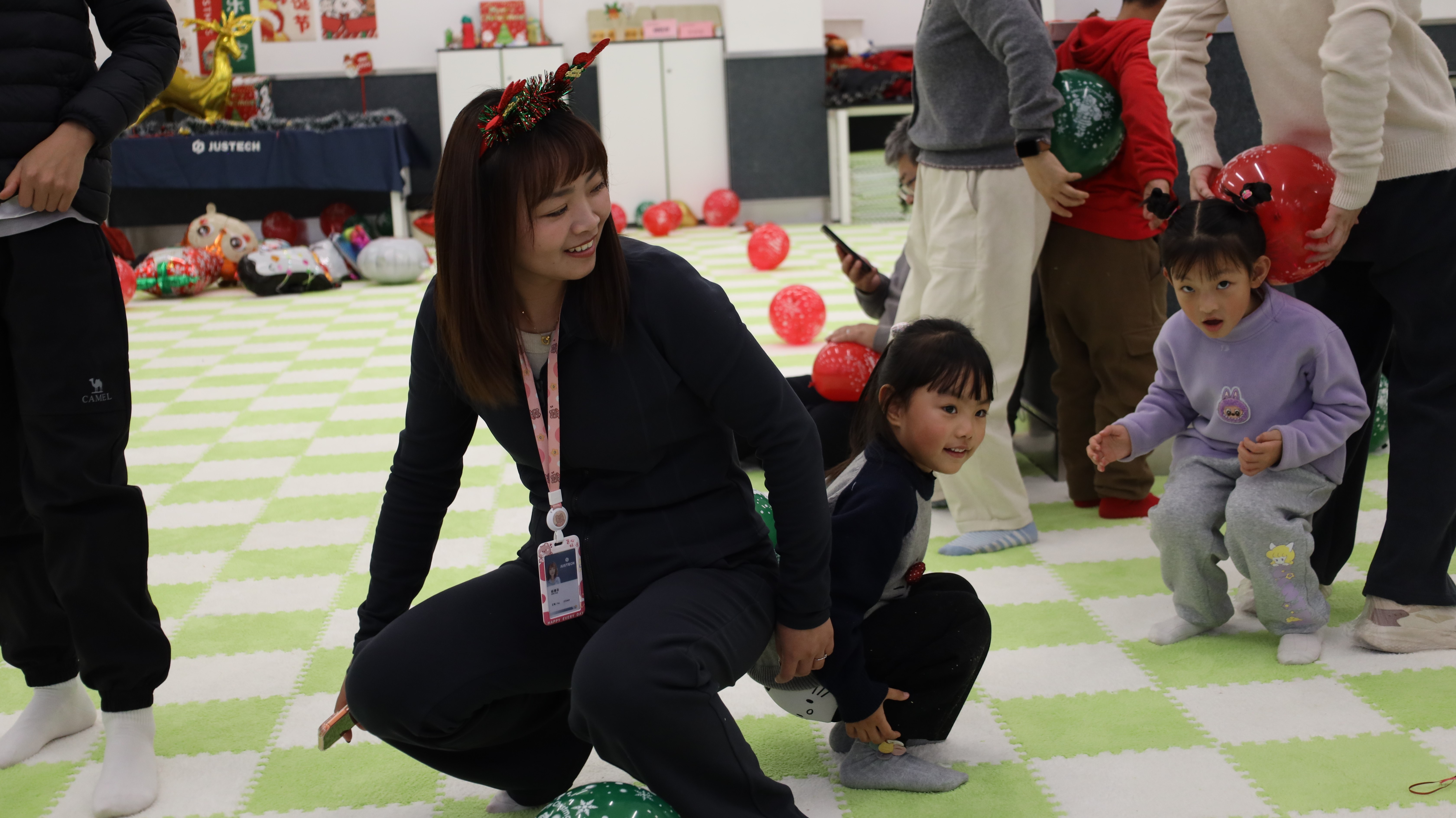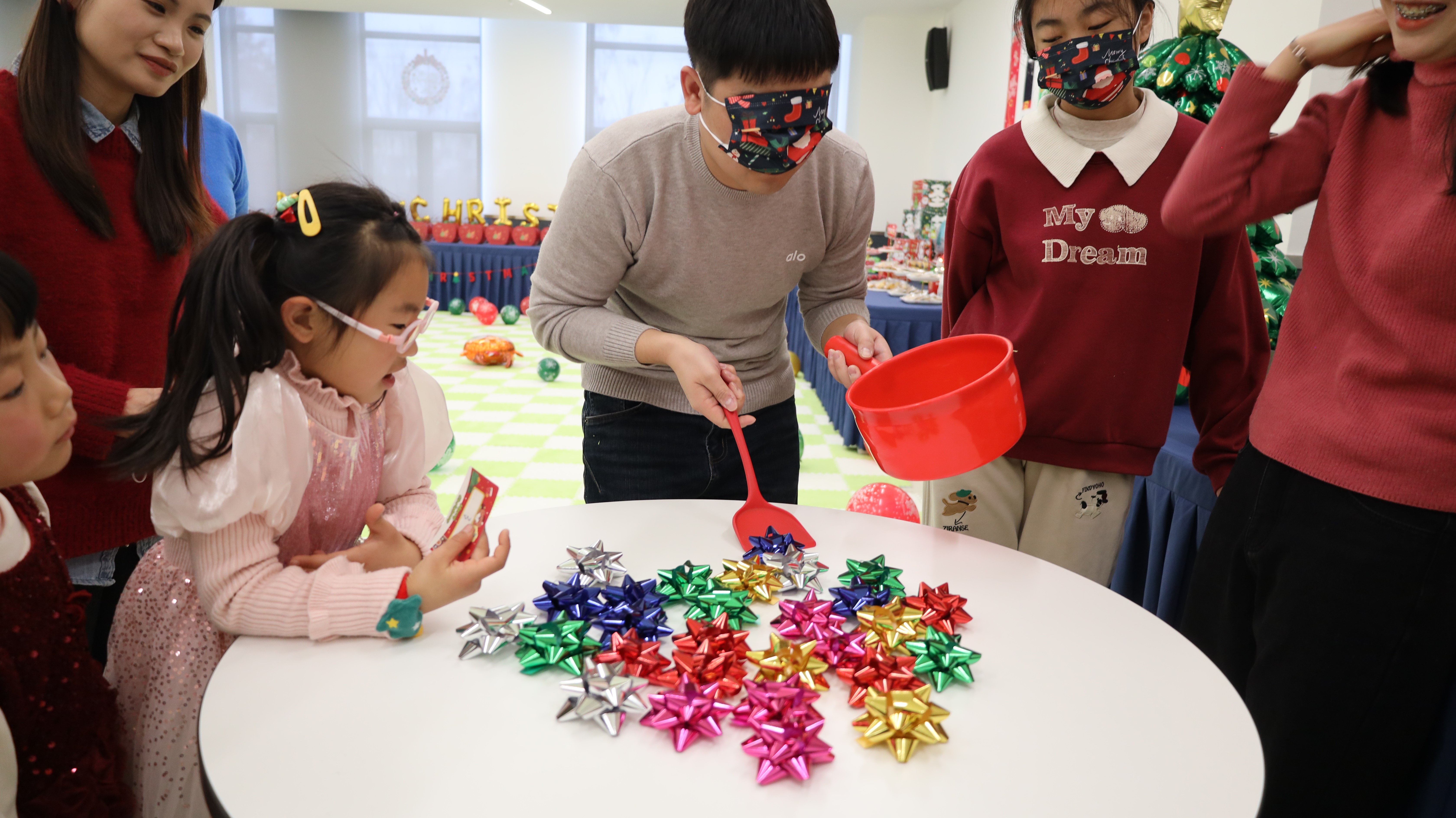 踏入活动现场,浓厚的圣诞氛围瞬间扑面而来:醒目而贴心的指引牌静静矗立,缤纷气球与节日装饰错落点缀,每一处细节都蕴藏着巧思与心意。