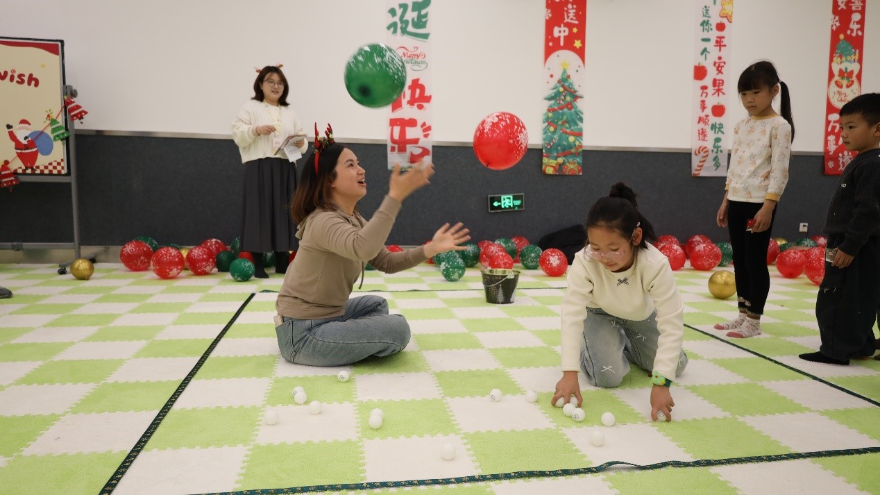 紧接着,挑战之旅正式启程。“圣诞投球”、“套驯鹿”、“蒙眼铲花”、“捡雪花”等趣味游戏紧密展开。亲子携手,默契闯关,在阵阵欢笑与加油声中收集象征成功的圣诞贴画,也为点亮圣诞树一步步积蓄光的“能量”。现场化作一片跃动着亲情与趣味的欢乐海洋。