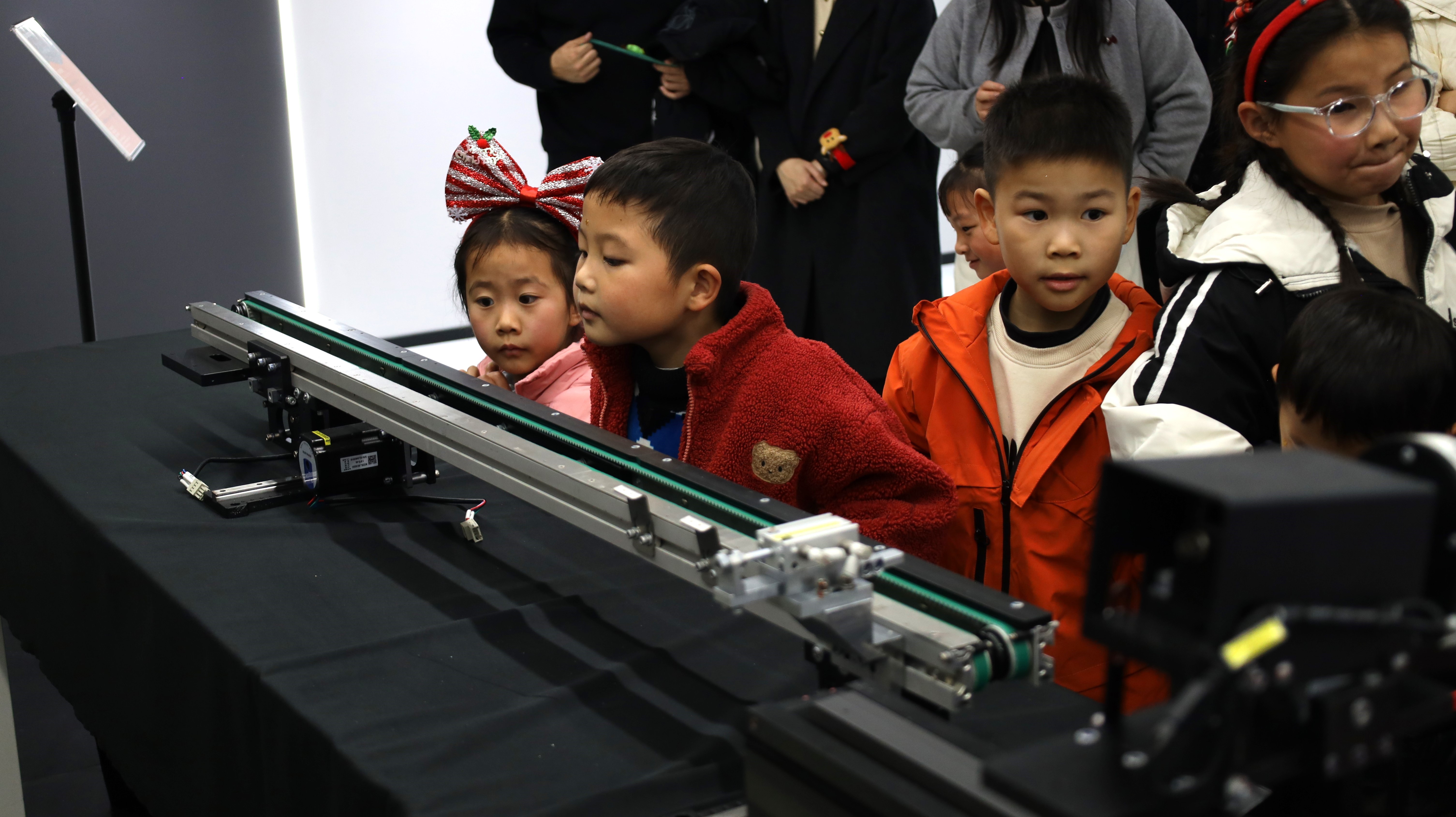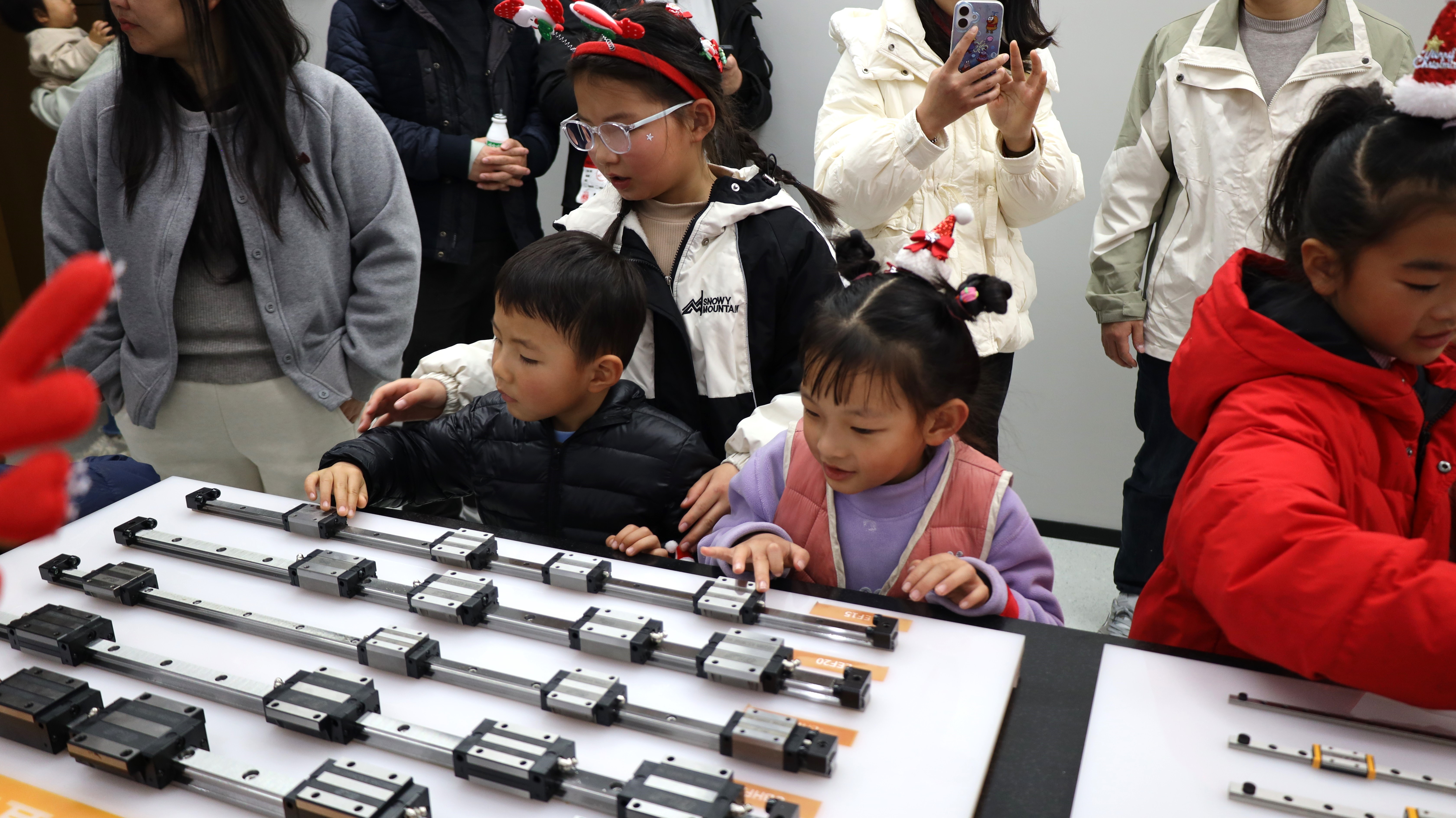 对父母的工作有了概念,真正的“科技探秘”随即展开。孩子们分组走进创新中心和园区,近距离观察那些构成智能世界的自动化设备和精密零件——这些平日里“隐藏的能量”。他们睁大好奇的双眼,积极提问互动,在真实的场景中完成了一次难忘的认知启蒙。