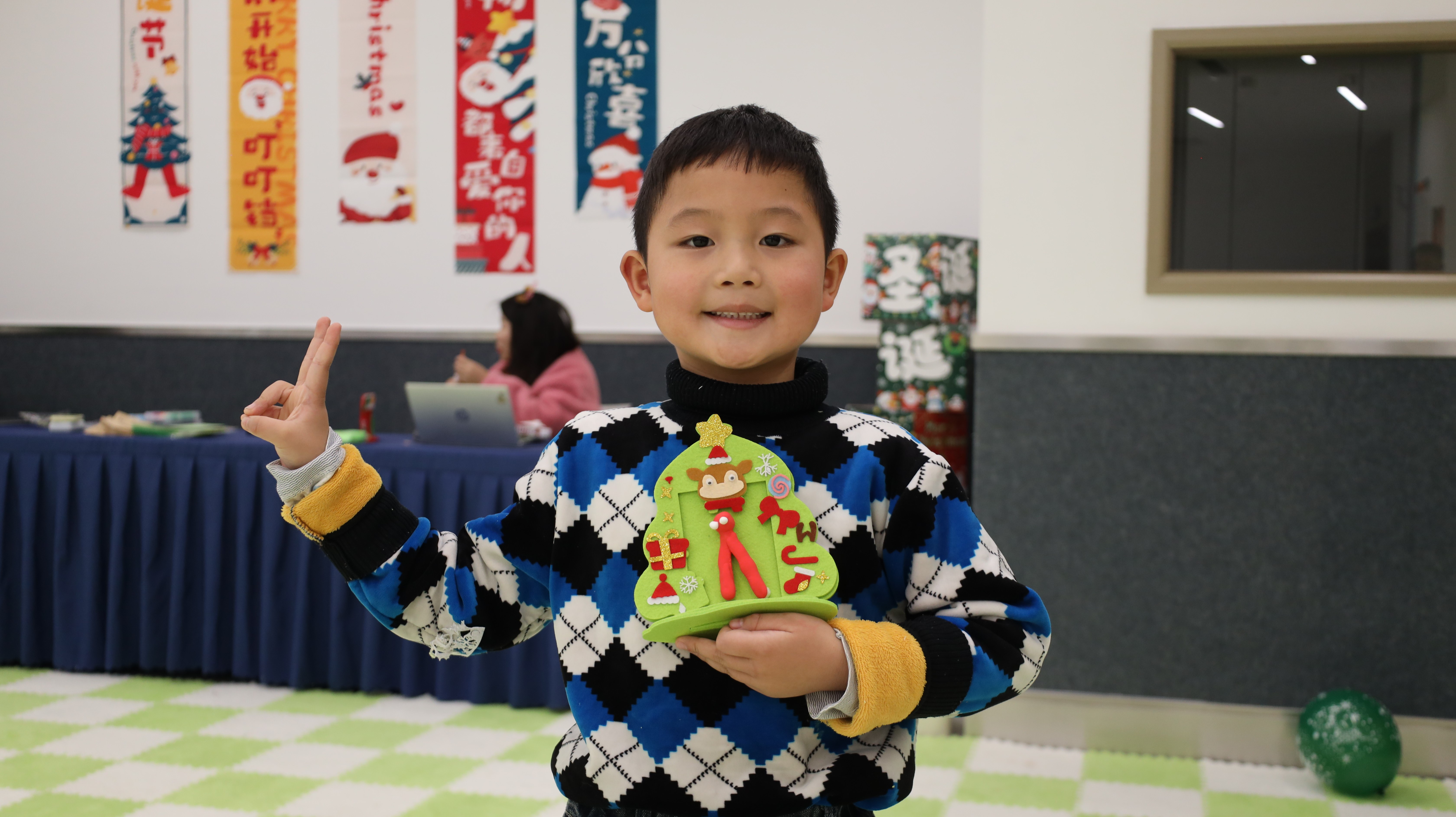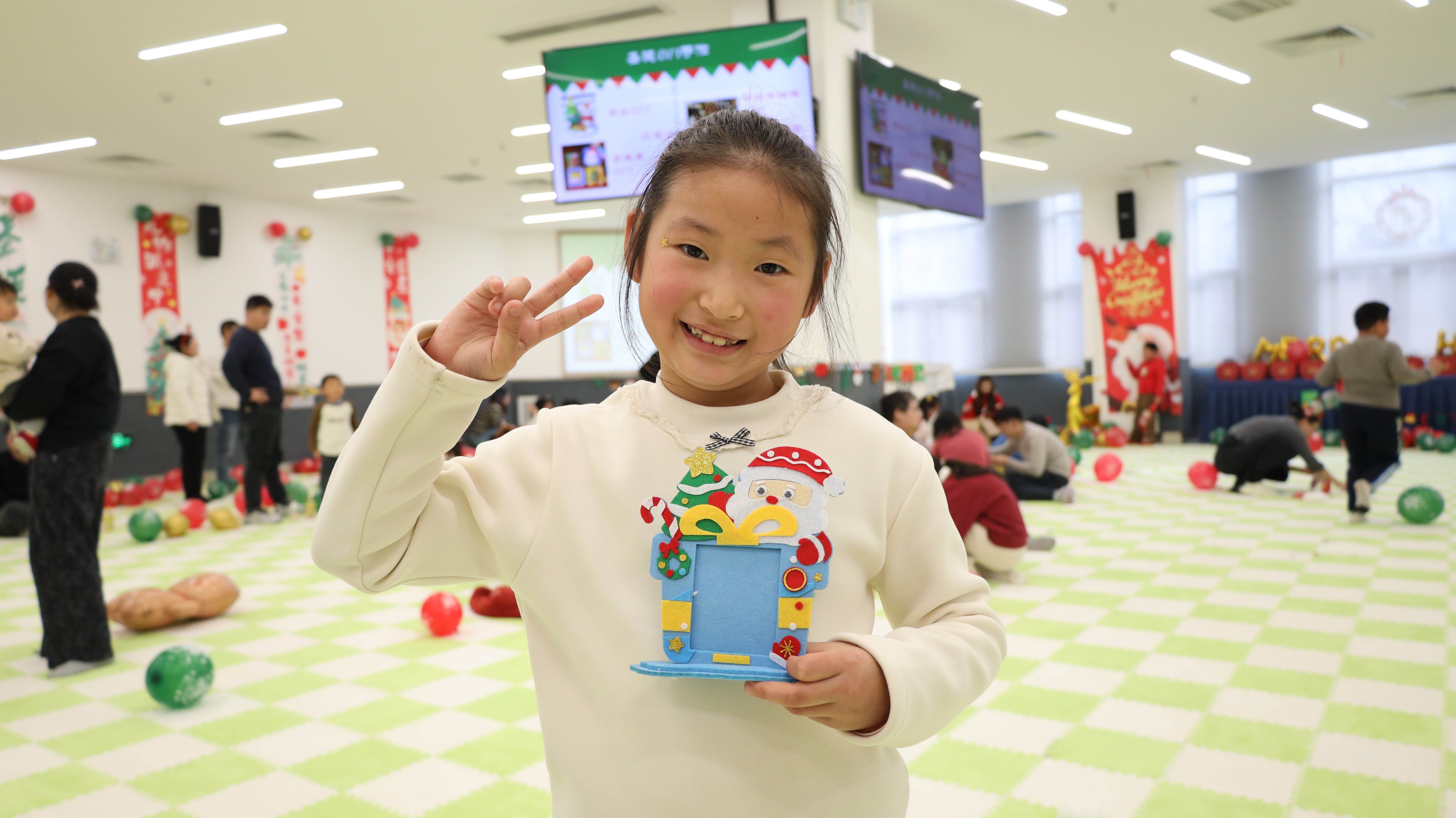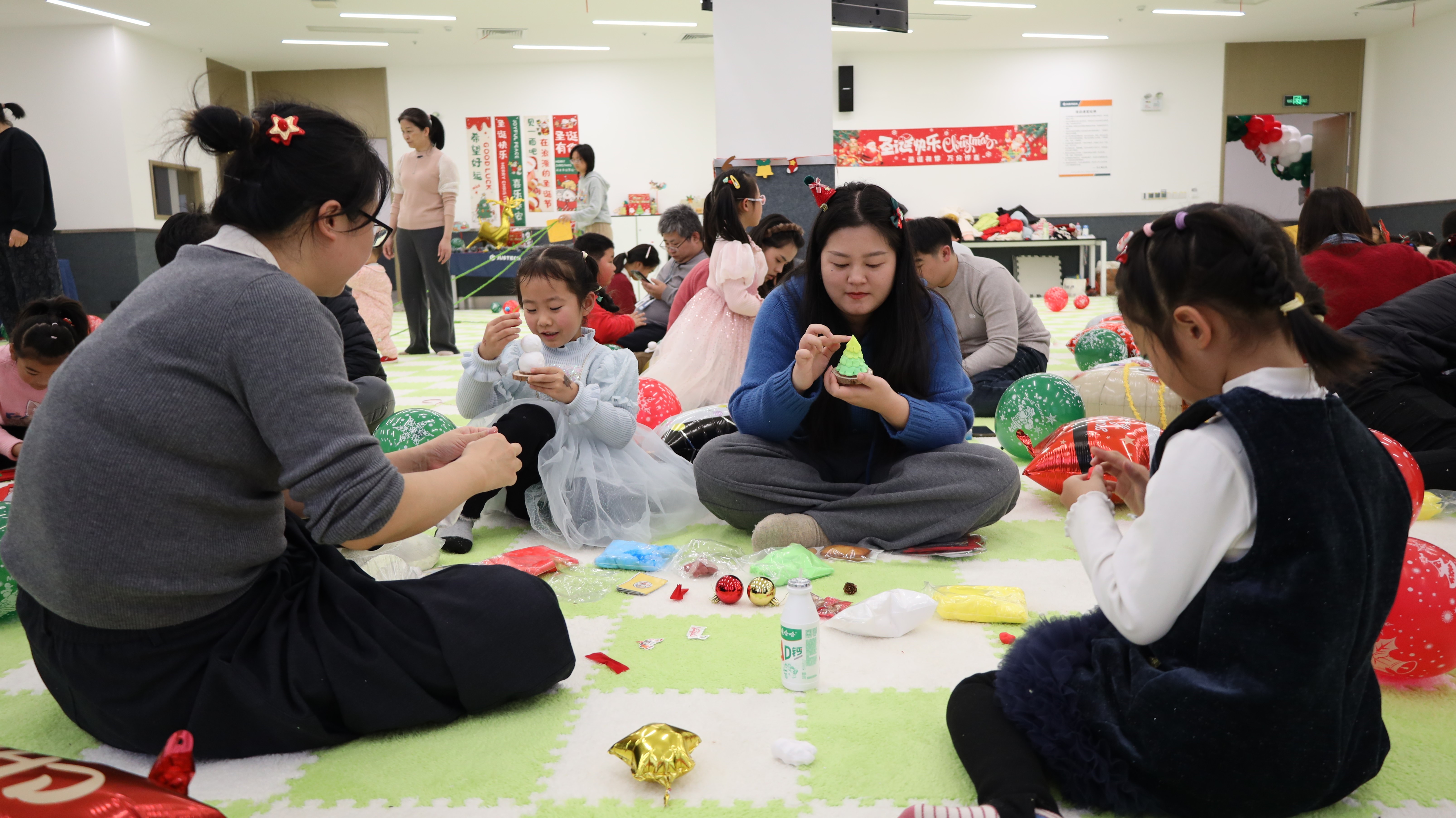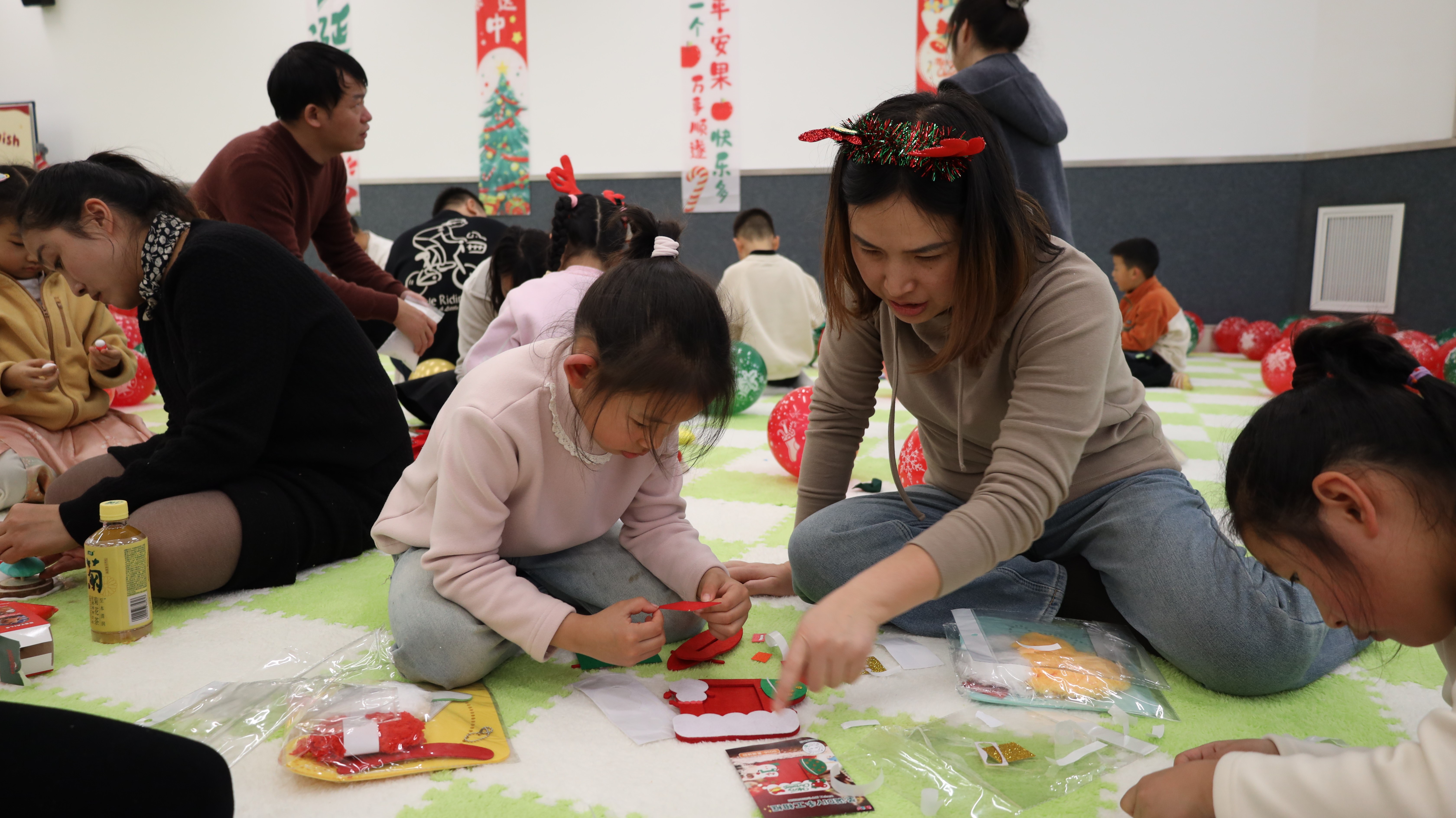 创意满满的心愿DIY环节让亲子时光更显温馨。粘土DIY、穿线画DIY、不织布相框DIY三大区域同步开放,孩子们天马行空的想象力在指尖流转,家长陪伴协作,共同创作出独一无二的圣诞作品。现场气氛专注而愉悦,洋溢着创造的满足与亲子的暖意。