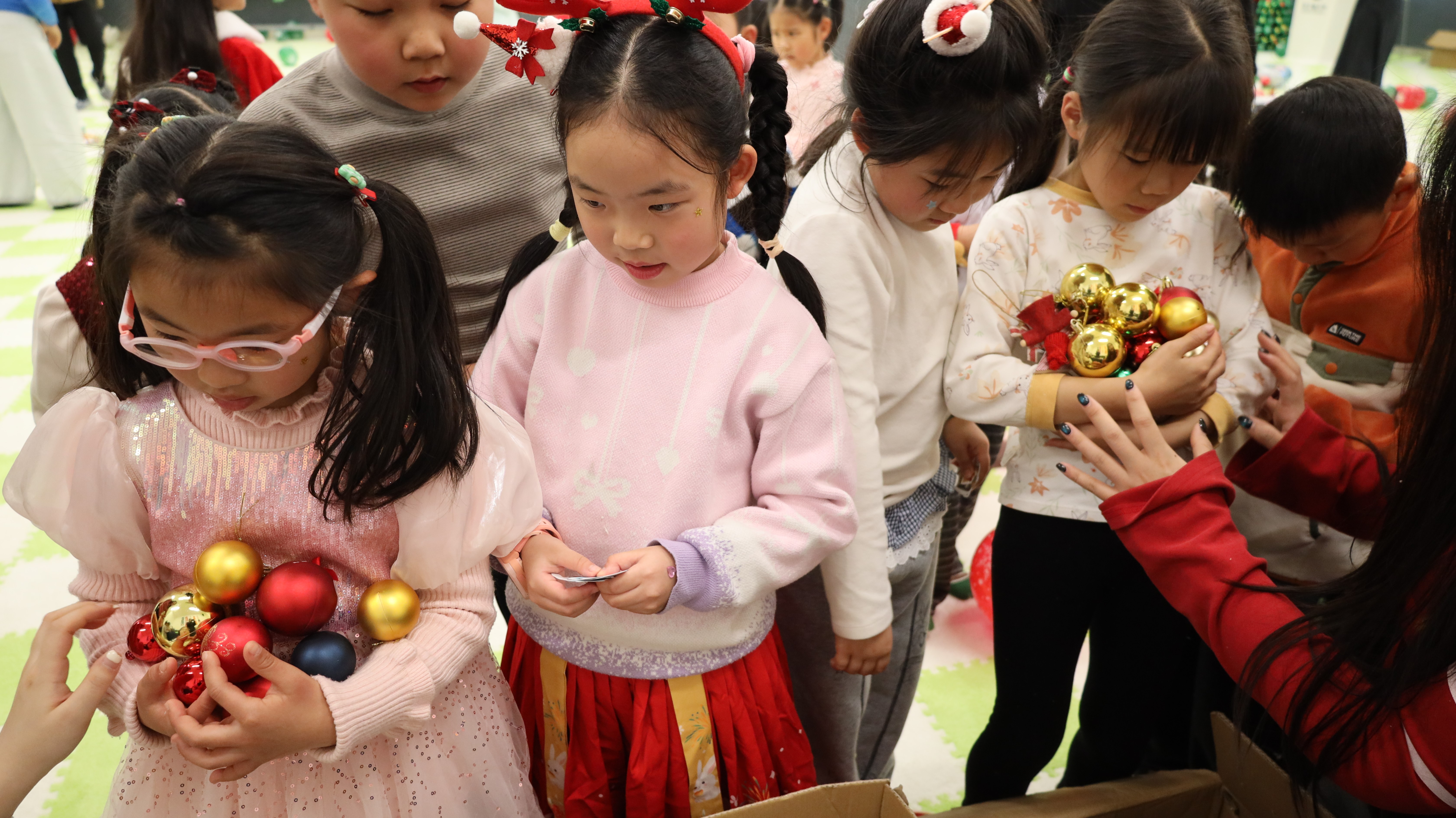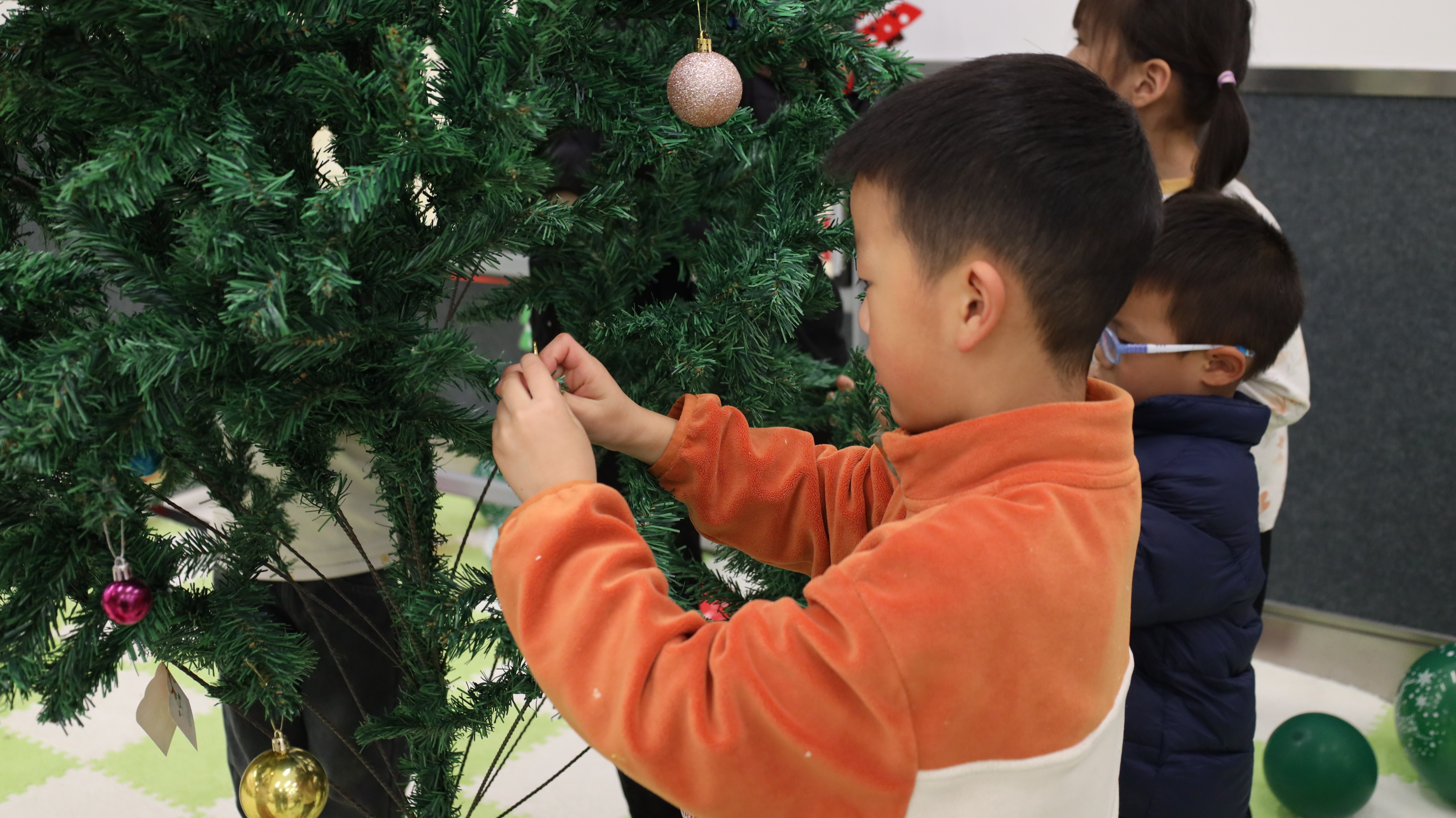 当天最令人期待的环节莫过于圣诞树装扮与圣诞老人见面会。孩子们用全天收集的魔法贴画兑换各式装饰,与父母一起将祝福挂满枝头。